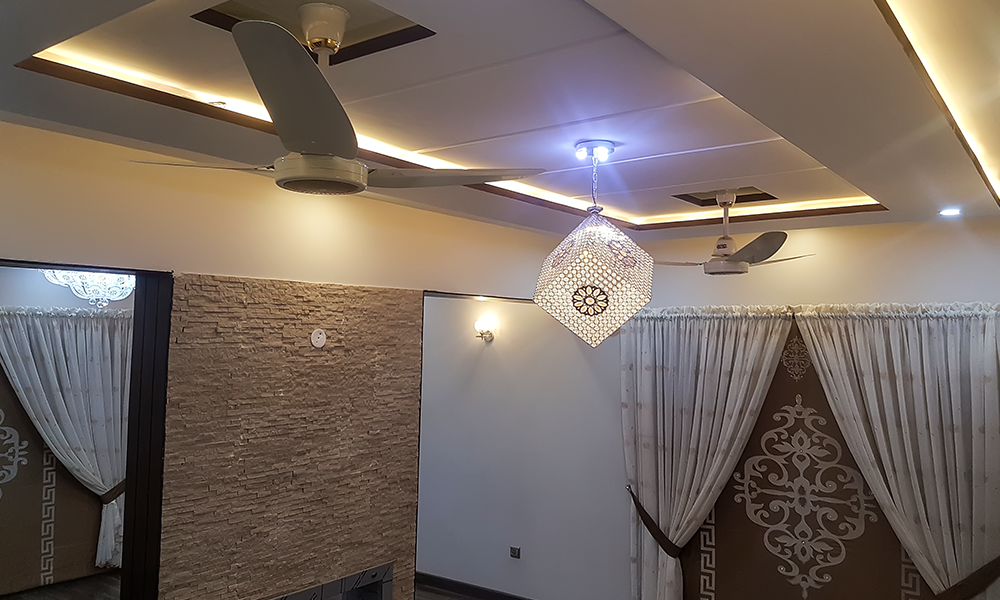 Spectacle structure with luxurious interior entities. Contemporary architecture of 22 Marla or 1.1 Kanal corner house in Phase 4 of DHA Lahore. A challenging project designed by architecture team of Team Overc’s under the brand name of Designerz lounge. Construction of house from grey structure till finish was carried out on turnkey contract by Team Overcs successfully.