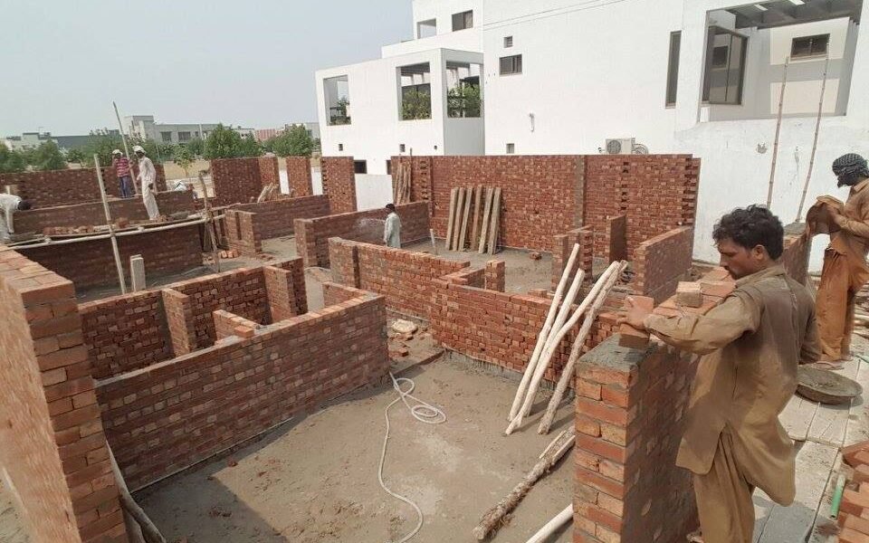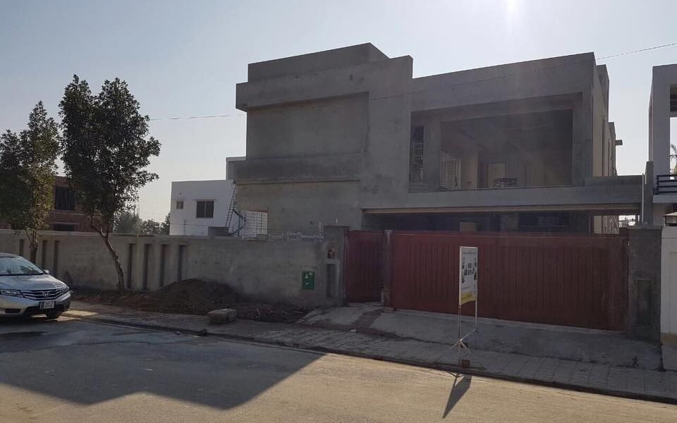 Spectacle structure with luxurious interior entities. Contemporary architecture of 20 Marla or 2 Kanal house in Nishter block Sector E Bahria town Lahore. A challenging project designed by architecture team of Team Overc’s under the brand name of Designerz lounge. Construction of house from grey structure till finish was carried out on turnkey contract by Team Overcs successfully. House was constructed on area of 1 kanal and remaining 1 kanal plot had spacious green lawn consisting tensile canopies sitting deck water falls and gazebos.